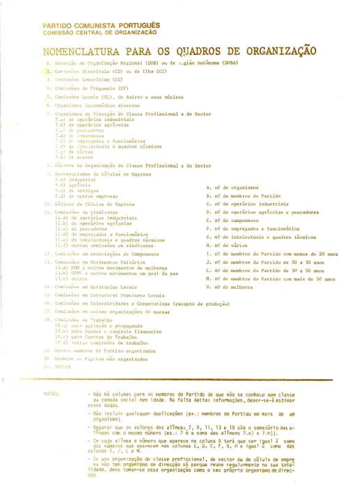 | 1982? | [Formulário) | PCP - COMISSÃO CENTRAL DE ORGANIZAÇÃO | |||||||