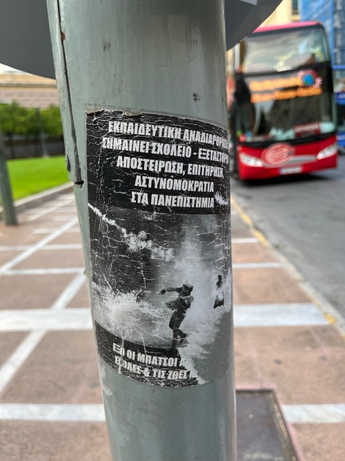 GRÉCIA – RUAS E PAREDES DE ATENAS – 2ª SÉRIE (SETEMBRO DE 2022) 07/09/2022 JPP ARQUIVO, Atenas, Autocolantes, Cartazes - faixas - outdoors, Fotografias, Grafito - grafiti, Grécia, Iconografia, Murais 0 Print (Opens in new window) Print Email a link to a friend (Opens in new window) Email Share on Facebook (Opens in new window) Facebook Share on X (Opens in new window) X Share on LinkedIn (Opens in new window) LinkedIn Like this:Like Loading...