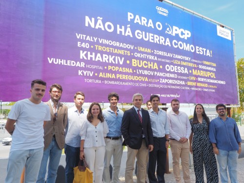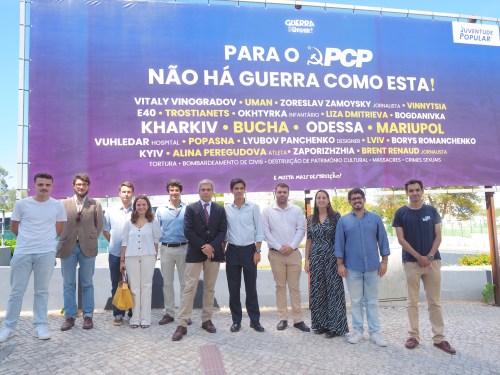Protesto à porta da Festa do Avante contra o apoio do PCP à invasão da Ucrânia [1 de Setembro de 2022].