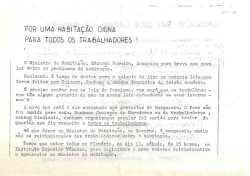 | 1976/04/10 | INTER-COMISSÕES DOS BAIRROS DA LATA E BAIRROS POBRES COMISSÃO DE MORADORES EM LUTA CONTRA A ESPECULAÇÃO DAS RENDAS DE C ASA ASSOCIAÇÃO DOS INQUILINOS LISBONENSES COMITÉ DE LUTA DOS OCUPANTES E MORADORES POBRES (CLOMP) |