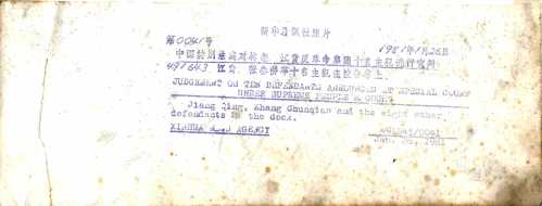 | 1981/01/26 | Julgamento do "bando dos quatro" | CHINA | JIANG QING | Xinhua News Agency ENTRADA 17-4-2023 | |||||||