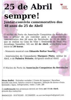 | 2022/04/25 | ASSOCIAÇÃO CONQUISTAS DA REVOLUÇÃO |