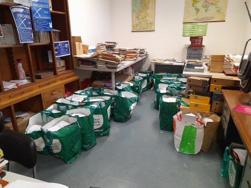 Todos os nossos pontos de recolha (e/ou casas de voluntários e amigos que pacientemente aguardam recolha), de Viana do Castelo a Faro, estão repletos de documentos e livros que, lentamente, e de acordo com as nossas possibilidades logísticas, vão sendo tratados e trazidos para os nossos armazéns. As Jornadas Mundiais da Juventude dificultaram a parte logística, por ausência de transportes, e agora o mês de Agosto, salvo uma ou outra urgência, foi dedicado ao descanso de uma parte da equipa. Em Setembro retomamos as recolhas (sim, porque o tratamento de documentação, as digitalizações e muito outro trabalho, prosseguem).
