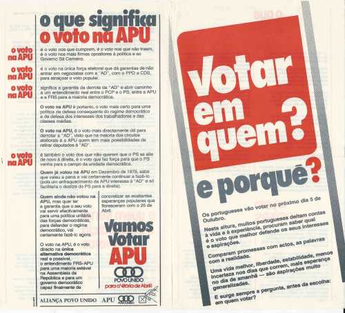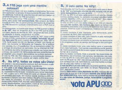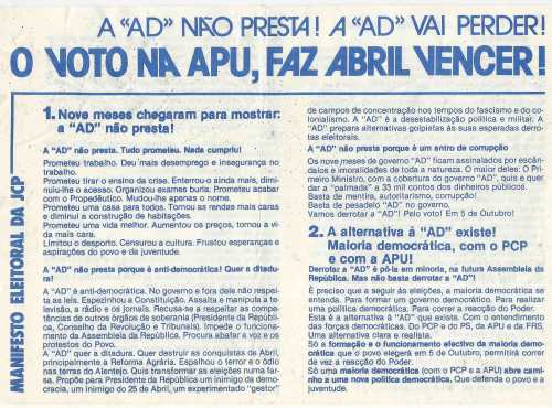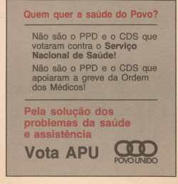 | 1985 | | | | APU | | ELEIÇÕES LEGISLATIVAS DE 1985 – APU | |