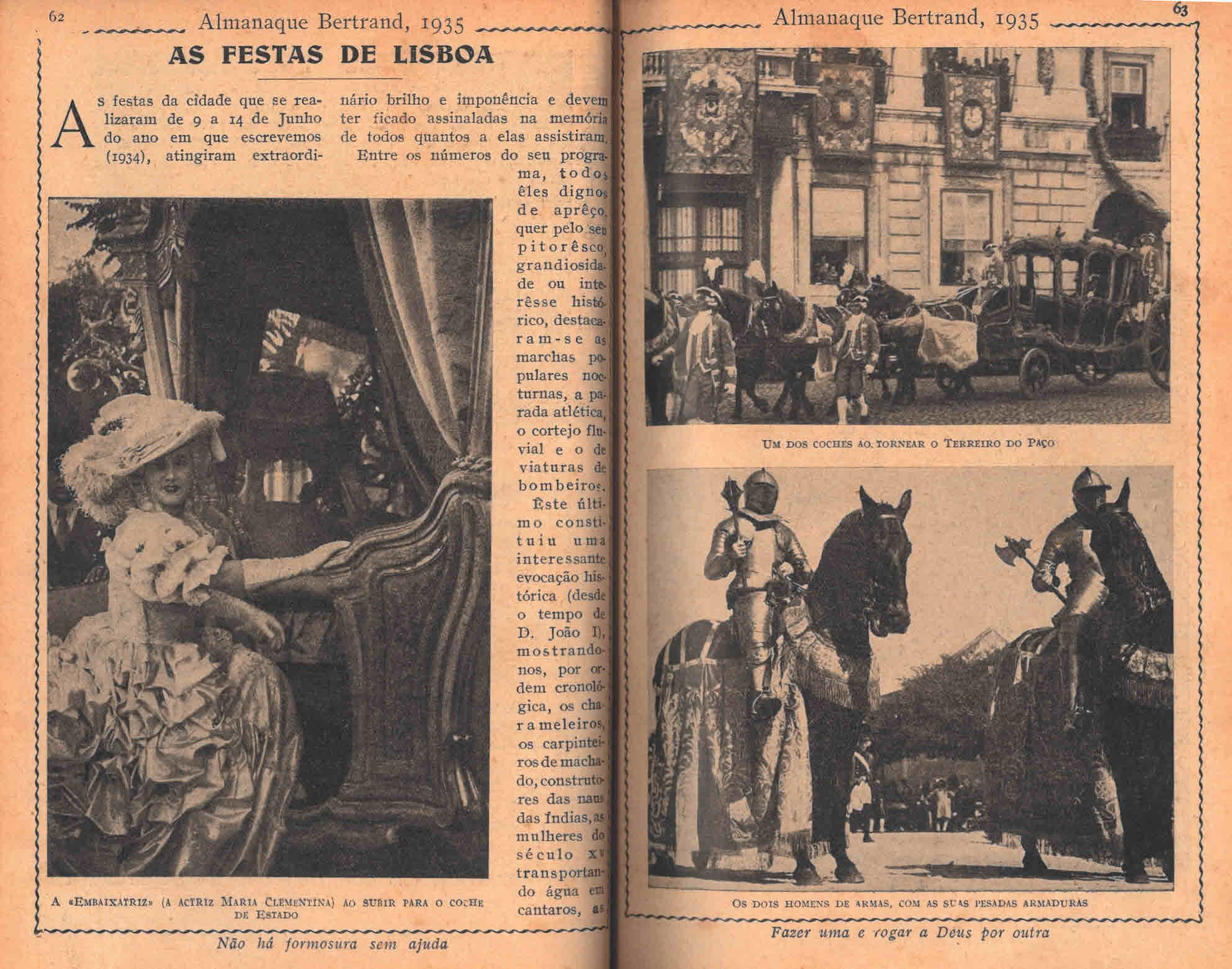 Há 90 anos, as Festas da Cidade de Lisboa, que decorreram de 9 a 14 de Junho de 1934 e incluíram uma reconstituição de uma Embaixada Portuguesa. No Almanaque Bertrand para 1935, entre os muitos que fazem parte do Núcleo do Tempo do maior arquivo privado do país.
