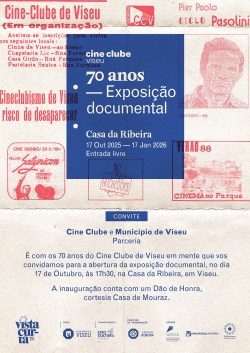 Exposição comemorativa dos 70 anos do Cine Clube de Viseu, de 17 de Outubro’25 a 17 de Janeiro’26, na Casa da Ribeira – Viseu.