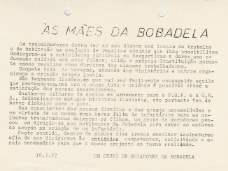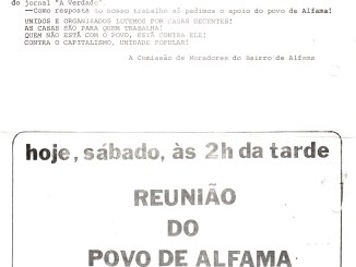 Listagem dos moradores Projecto de Estatutos da Associação de Moradores da Zona 1 Figueira da Foz, Agosto 1975 NOTA: Esta documentação está incluída numa pasta “PREC Documentos e Curiosidades”, que faz parte do Espólio do Eng. Manuel José Saraiva dos Santos, doada pela sua irmã Maria Manuela Saraiva dos […]