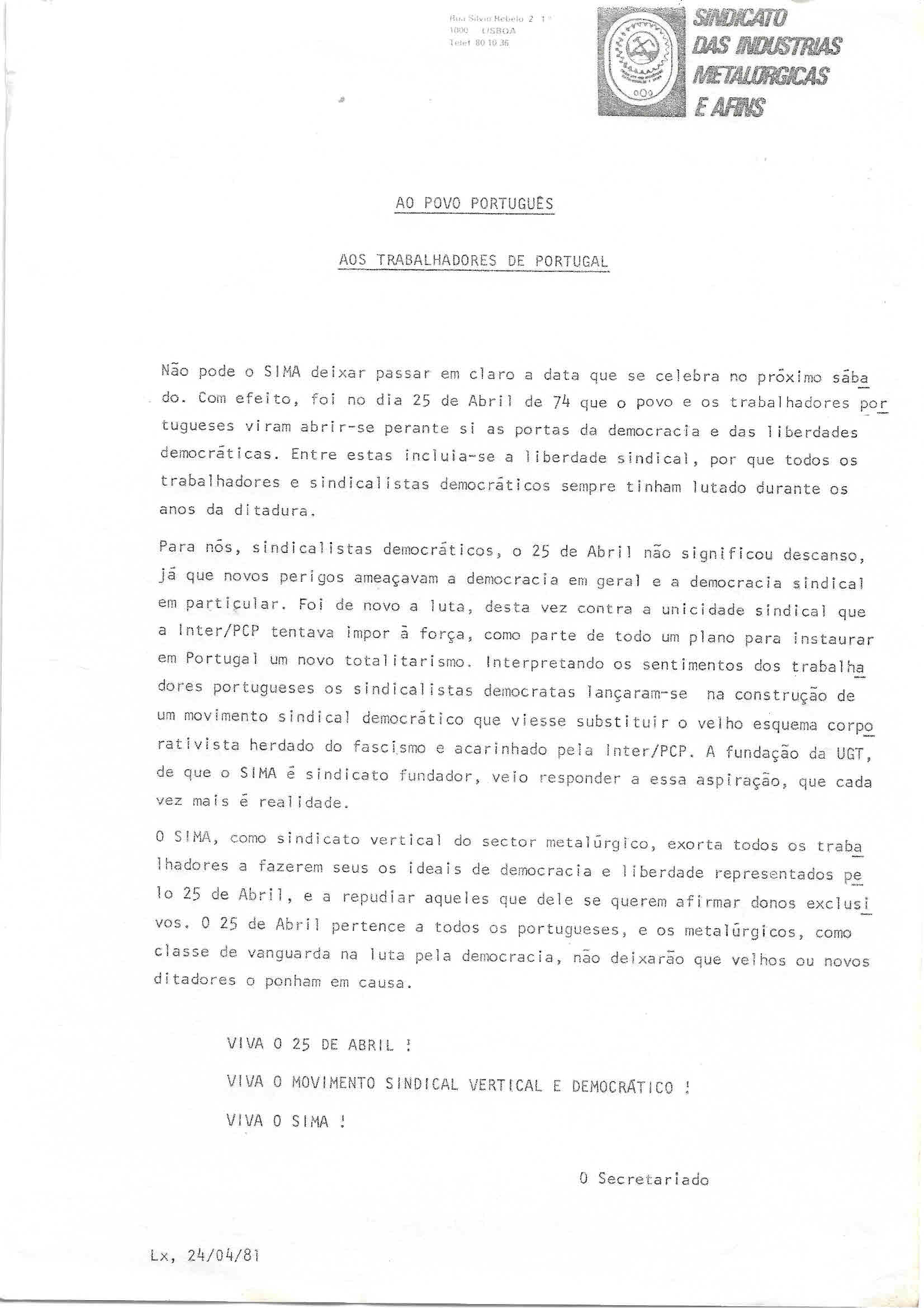 COMEMORAÇÕES DO 25 DE ABRIL – ÍNDICE